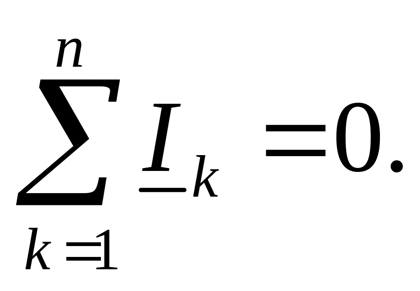 По первому закону Кирхгофа, алгебраическая сумма мгновенных значений токов, сходящихся в любом узле схемы равна нулю: