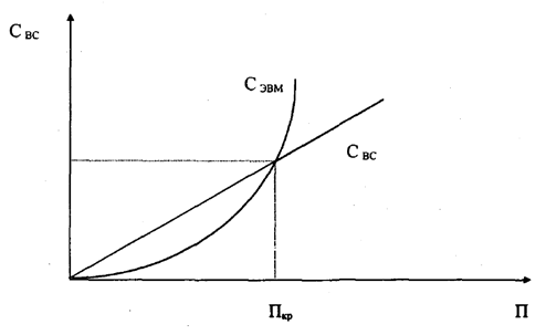 На рисунке выше представлены графики изменения стоимости вычислений для ЭВМ и ВС. Для каждого поколения ЭВМ и ВС существует критический порог сложности решаемых задач Пкр , после которого применение автономных ЭВМ становится экономически невыгодным, неэффективным. Критический порог определяется точкой пересечения двух приведенных зависимостей.