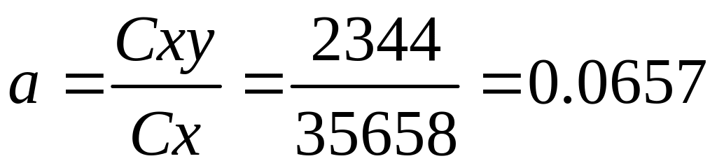 Затем рассчитаем коэффициенты: a = Cxy / Cx, b = My − a ∙ Mx.