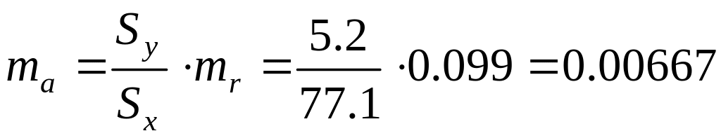 Оценить значимость коэффициента регрессии позволяет критерий t Стьюдента, проверяющий нулевую гипотезу Но: а = 0, коэффициент регрессии значимо от нуля не отличается. С этой целью рассчитывается ошибка коэффициента регрессии ma:
