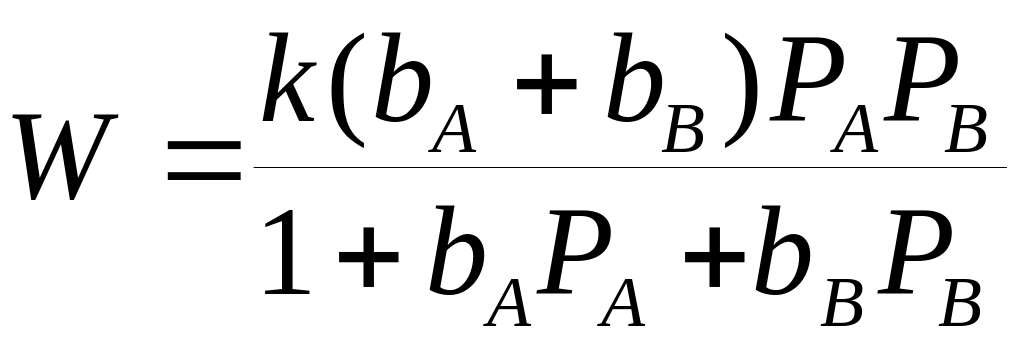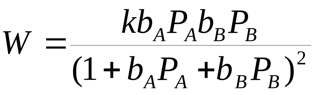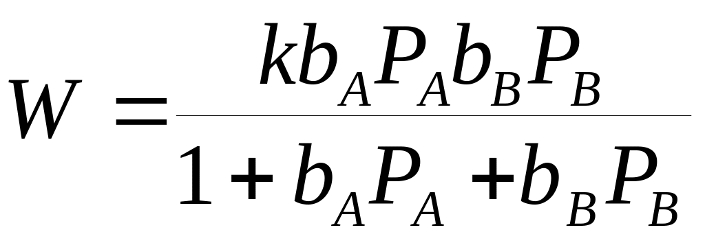 24. Получите уравнение для скорости бимолекулярной гетерогенной каталитической реакции Aгаз + Вгаз Ргаз, происходящей по механизму Ленгмюра-Гиншельвуда, при условии, что вещества А и В адсорбируются на различных каталитических центрах.