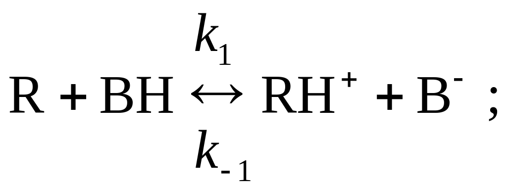 8. Реакция R P в присутствии кислоты Бренстеда BH (катализатор) происходит по механизму специфического кислотного катализа: