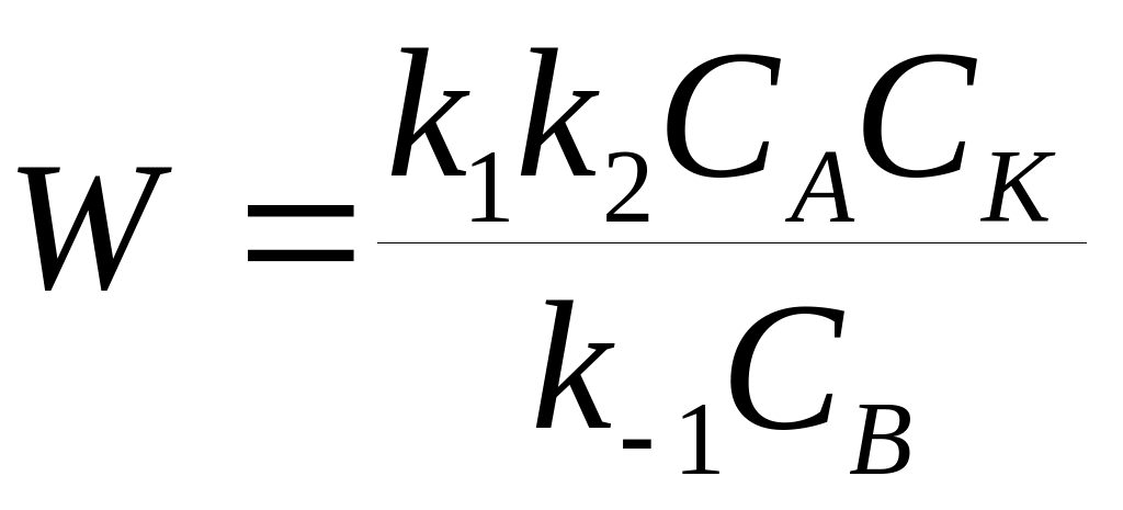 5. Если гомогенная каталитическая реакции протекает по механизму, представленному в вопросе 4, то суммарная скорость процесса: