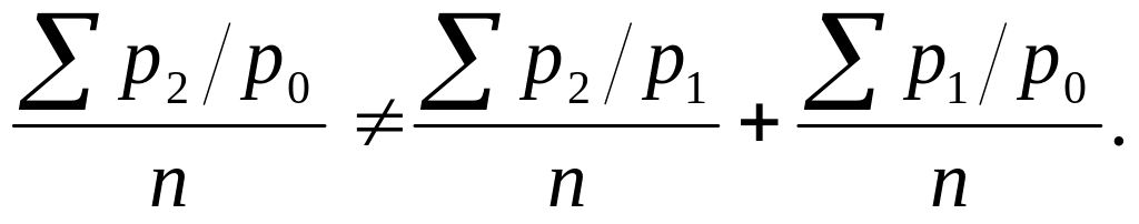 Если простую среднюю применять не для собственно цен на акции, а для их индивидуальных индексов (т. е. р1/р0), то предпочтительно использовать формулу средней геометрической, а не средней арифметической, поскольку она не удовлетворяет условию транзитивности: