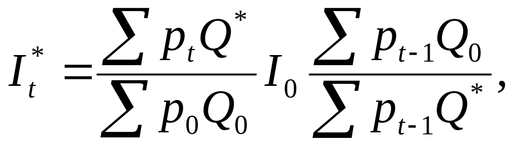 It-1 — значение индекса на момент, предшествующий изменению состава совокупности.