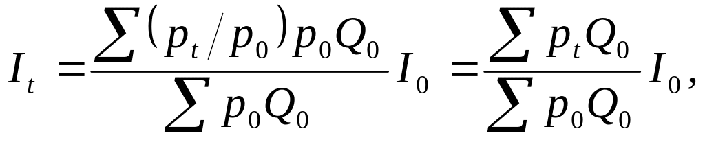 Если разделить этот индекс на начальное значение Io, то результат будет показывать, во сколько раз выросла суммарная рыночная капитализация рассматриваемой совокупности компаний по сравнению с базисным моментом. По-иному этот результат можно интерпретировать как среднее относительное изменение цен на акции.