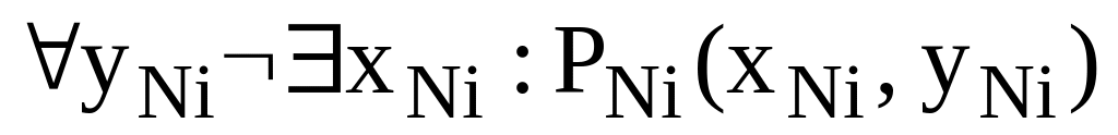 – означает, что для всех требований нормативных документов yNi не существует отраженных в экспертируемом документе требований xNi, при которых предикат PNi(xNi, yNi) является истинным);