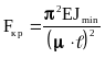Сжимающая нагрузка, вызывающая потерю устойчивости, называется критической. Теоретическая формула для определения критической силы, формула Эйлера, имеет вид: