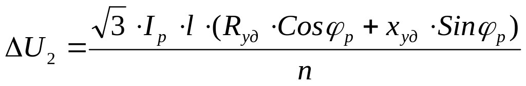Падение напряжение в кабельной линии (формула 2.3.1, 2.3.2 ) :