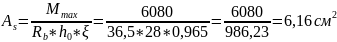 Визначаэмо площу робочої арматури за нормальним перерізом