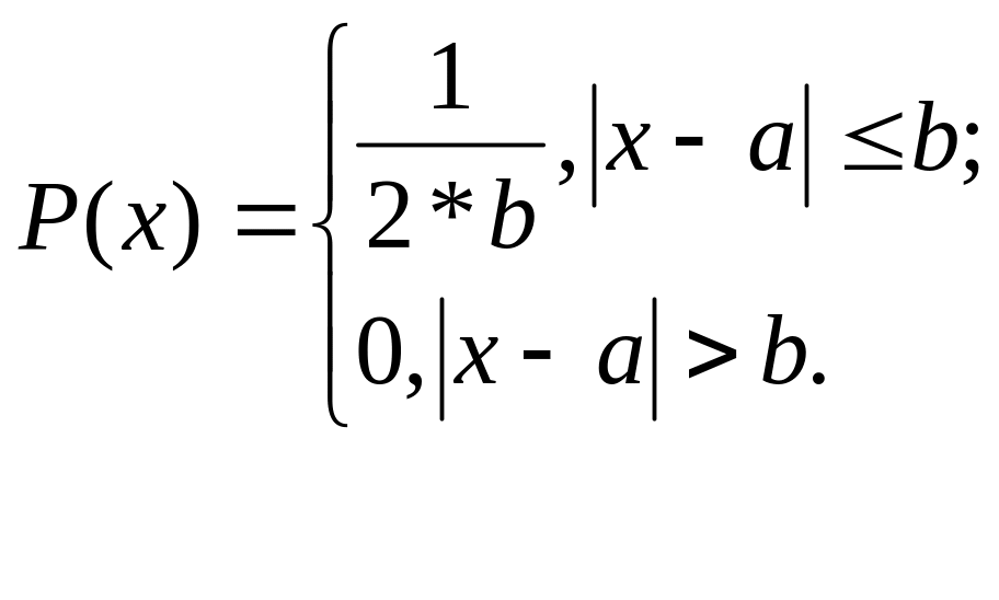 Обладает наибольшей неопределенностью для всех СВ, принимающих значение в интервале (a-b;a+b). Во многих случаях может рассматриваться как крайний случай, как наихудшее распределение. |