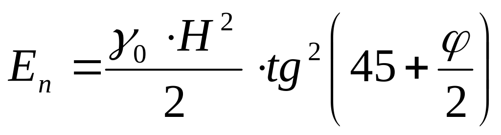 Соответственно эпюра давления на стенку при однородном грунте засыпки будет иметь вид треугольника и при высоте стенки h равнодействующая эпюры давления покоя определится как