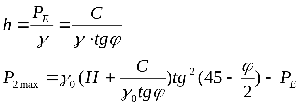 Сцепление заменяем эквивалентным давлением РЕ- давлением связности (см. лекцию 4)