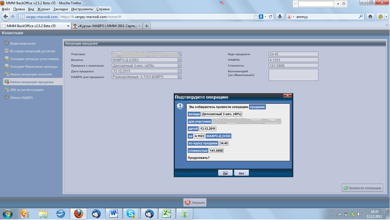 По умолчанию назначение платежа – частный перевод. Ни в коем случае не упоминать слова МММ, мавро, депозит, вклад, процент, покупка, десятка и т.п.