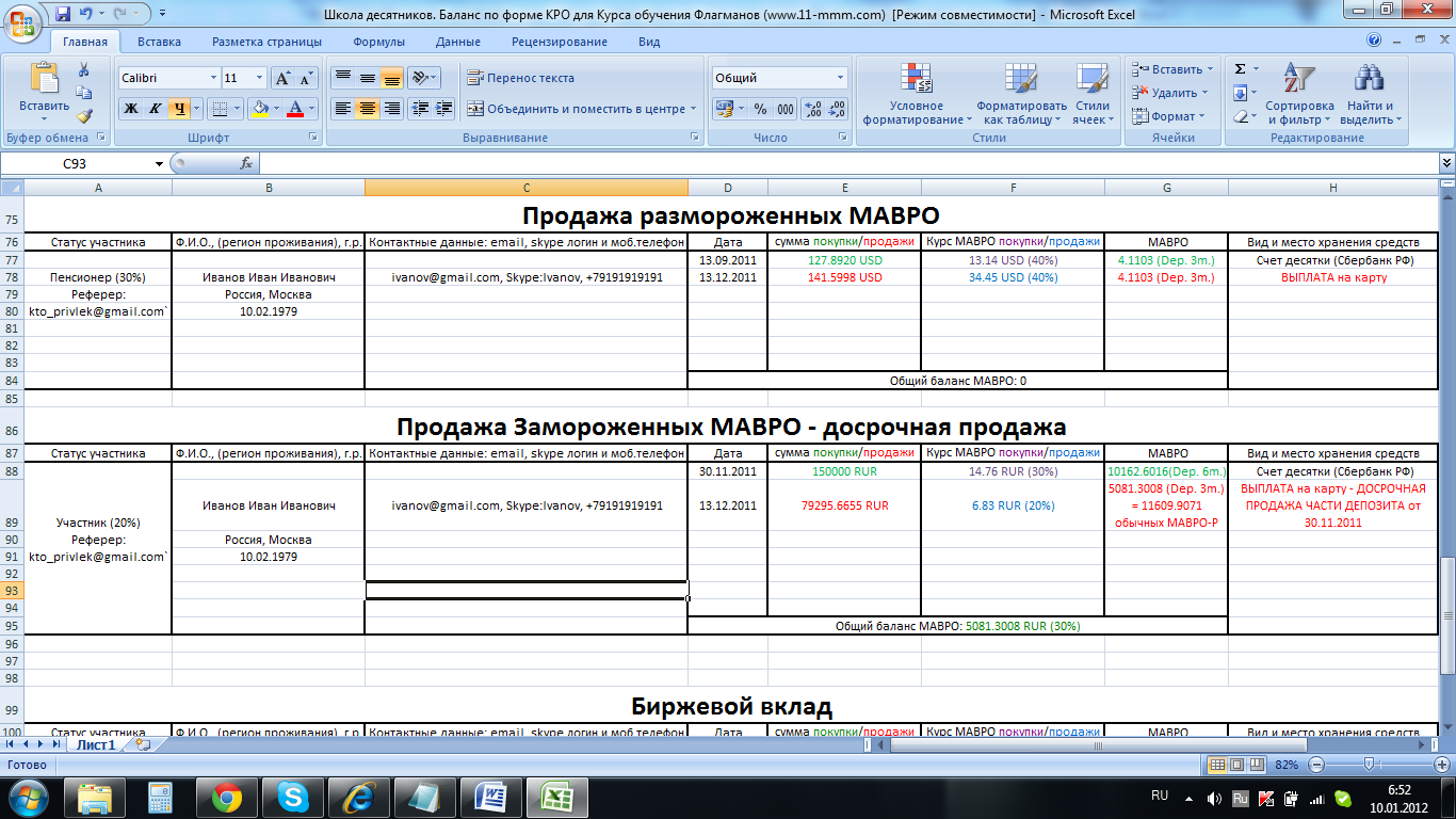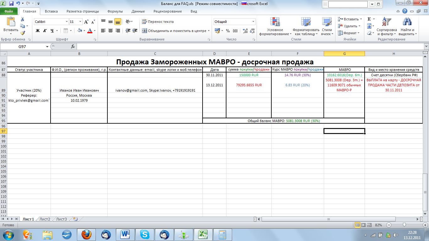 Прошу выплатить мне 100 000 рублей за счет досрочной продажи половины моих МАВРО с депозита 3 месяца под 30 % в месяц. Деньги прошу отправить банковским переводом, на счет по этим реквизитам: