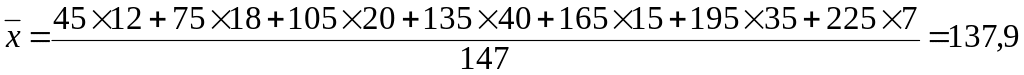 Таким чином, отримали, що середній розмір виробництва для всіх підприємств складає 137,9 тис. грн. (це показали обидва способи). Мода означає, що найбільш розповсюдженим є обсяг виробництва в розмірі 133,3 тис. грн. Медіана означає, що половина підприємств виробляє продукцію у розмірі до 127,8 тис. грн., а друга половина ― більше цієї суми.