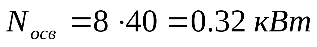 Враховуючи, що освітлення приміщення здійснюється світильниками в кожному з яких по 2 люмінесцентними лампами потужністю 40 Вт: