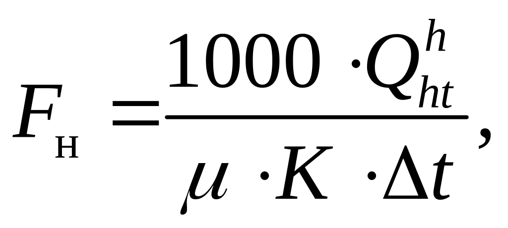 Необходимую поверхность нагрева водонагревателей в м2 определяют по вычисленному часовому расходу тепла Qhrh , кВт, и коэффициенту теплопередачи К, Вт/м2-град.