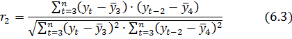 Число периодов, по которым рассчитывается коэффициент автокорреляции, называют лагом. С увеличением лага число пар значений, по которым рассчитывается коэффициент автокорреляции, уменьшается.