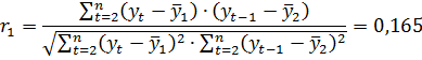 Эту величину называют коэффициентом автокорреляции уровней первого порядка, т.к. он измеряет зависимость между соседними уровнями ряда t и t-1, т.е. при лаге 1.