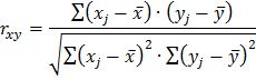 Одна из рабочих формул для расчета коэффициента корреляции имеет вид: