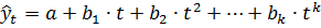 Выбор наилучшего уравнения в случае, если ряд содержит нелинейную тенденцию, можно осуществить путем перебора основных форм тренда, расчета по каждому уравнению скорректированного коэффициента детерминации R2 и выбора уравнения тренда с максимальным значением скорректированного коэффициента детерминации. Реализация этого метода относительно проста при компьютерной обработке данных.