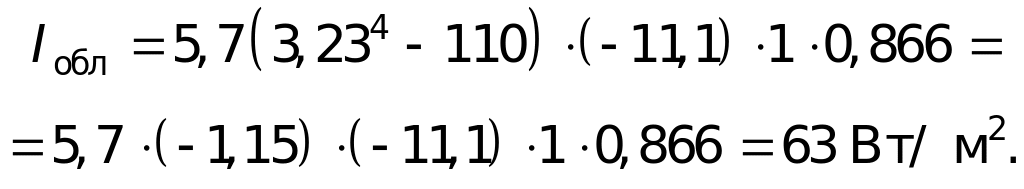 По табл. 10.2 для нагретой поверхности при облучении от 25 до 50 % поверхности тела Iдоп = 70 Вт/м 2.