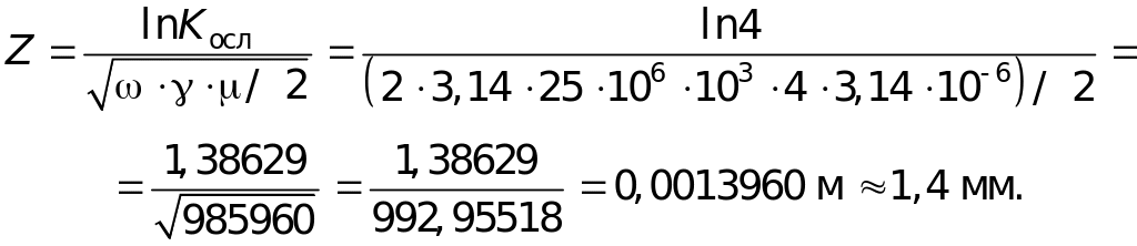 2. Т.к. измеренное на рабочем месте значение напряжённости ЭМП равно Еизм = 30 В/м, то коэффициент ослабления составит