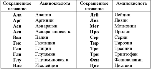 Первичная структура белка, т.е. последовательность амнокислотных остатков, зашифрована в ДНК в виде последовательности азотистых оснований аденина (А), тимина (Т), гуанина (Г) и цитозина (Ц). Каждая аминокислота кодируется одной или несколькими последовательностями из трех нуклеотидов – триплетами. Синтезу белка предшествует перенос его кода с ДНК на информационную РНК (иРНК) – транскрипция. При транскрипции выполняется принцип дополнения, или комплементарности: А, Т, Г и Ц в ДНК соответствуют У (урацил), А, Ц и Г в иРНК. Непосредственно синтез белка, или трансляция, происходит на рибосоме: аминокислоты, подносимые к рибосоме своими транспортными РНК (тРНК), соединяются в полипептидную цепь белка соответственно триплетам оснований иРНК.
