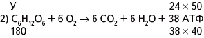 2 С6Н12О6 + 2 × 6 О2 → 2 × 6 СО2 + 2 × 6 Н2О + 2 × 38 АТФ Ответ: