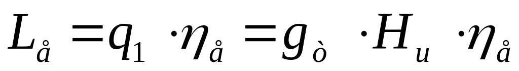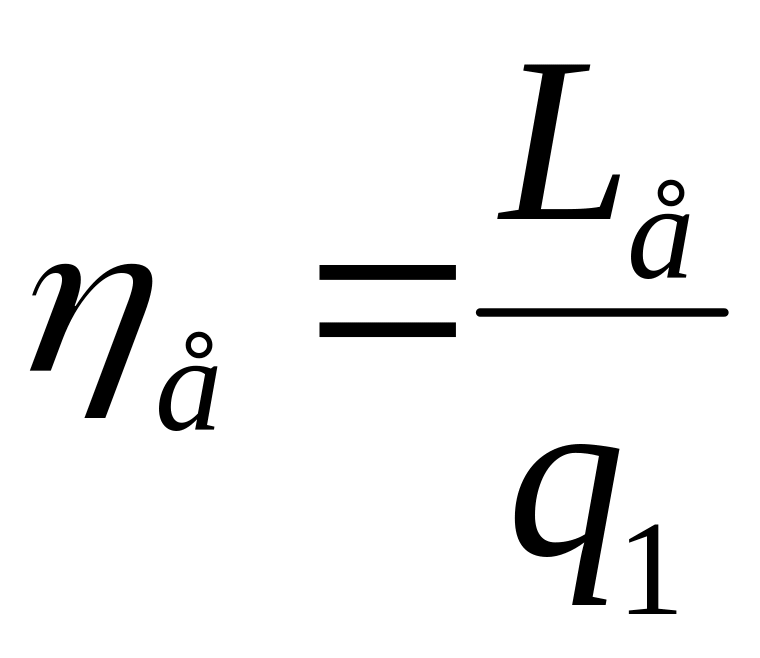 При этом под затраченным теплом q1 подразумевают количество тепла, которое может выделиться при полном сгорании использованного топлива. Поскольку Le относится к 1 кг поступающего в двигатель воздуха, то (пренебрегая отбором воздуха из компрессора) :