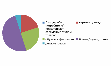 В гардеробе потребителей присутствуют следующие группы товаров:
