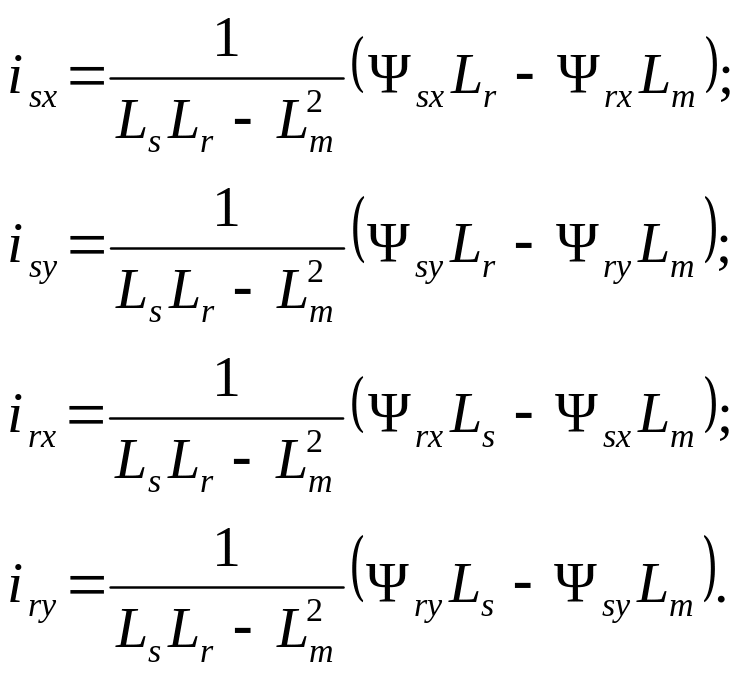 Для того, чтобы обеспечить оговоренный ранее состав сигналов модели, найдем обобщенные вектора тока ротора и потокосцепления статора: