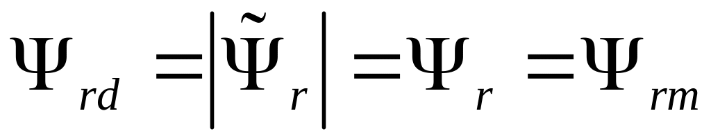 Для того, чтобы направление действительной оси ортогональной системы координат совпадало с направлением обобщенного вектора потокосцепления ротора ψr, взятого за основу, система координат должна вращаться синхронно с этим вектором. При этом вектор потокосцепления ротора в ней будет иметь только действительную составляющую, так как проекция этого вектора на мнимую ось q будет равна нулю. Тогда условия математического описания АД в этих координатах будут иметь вид