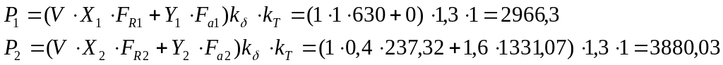 Определяем коэффициенты радиальной и осевой нагрузок: