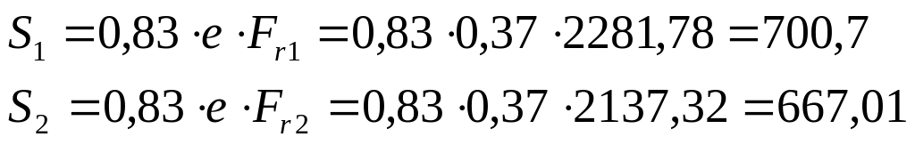 Находим осевые составляющие от радиальных сил, действующих на каждый из подшипников вала: