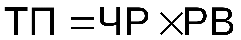 Як нам уже відомо, об'єм товарної продукції (ТП) залежить від двох основних чинників першого порядку: кількості робітників (КР) і середньорічного виробітку (РВ). Маємо двофакторну мультиплікативну модель: