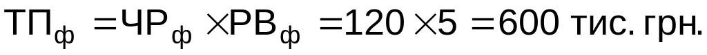 Третій показник товарної продукції відрізняється від іншого тим, що при його розрахунку розміри виробітку робітників прийняті за фактичним рівнем замість планового. Кількість же працівників в обох випадках фактична. Звідси за рахунок підвищення продуктивності праці об'єм товарної продукції збільшився на 120 тис. грн. (600 – 480).