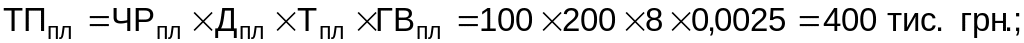Як бачимо, другий показник товарної продукції відрізняється від першого тим, що при його розрахунку прийнята фактична чисельність робітників замість планової. Середньорічний виробіток продукції одним робітником у тому й іншому випадку є плановим. Виходить, що за рахунок росту чисельності робітників випуск продукції збільшився на 80 тис. грн. (480 – 400).
