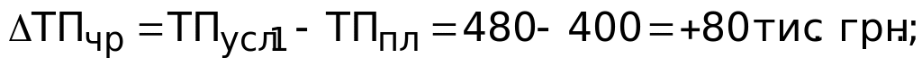 План випуску продукції в цілому перевиконаний на 200 тис. грн. (600 – 400), у тому числі за рахунок зміни: