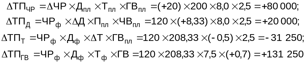 Таким чином, за допомогою способу абсолютних різниць утворюються ті ж результати, що і завдяки ланцюговій підстановці. Тут також необхідно стежити за тим, щоб алгебраїчна сума приросту результативного показника за рахунок окремих чинників дорівнювала його загальному приросту.
