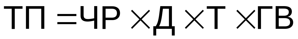 Алгоритм розрахунку для мультиплікативної чотирьохфакторної моделі товарної продукції виглядає так: