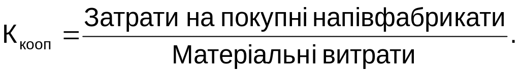 Динаміка рівнів кооперованих постачань досліджується шляхом порівняння коефіцієнта кооперування за декілька років: