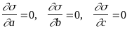 Величина является функцией трех переменных a, b, c. Необходимым и достаточным условием существования минимума этой функции является равенство нулю частных производных функции по всем переменным, то есть: