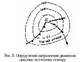 а) Центр циклона перемещается параллельно изобарам теплого сектора, оставляя теплый сектор справа от направления движения (рис. 8).