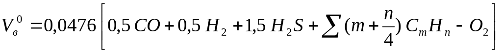 +(4+10/4)·0,4+(5+12/4)·0,1– 0] = 9,57 м3/м3