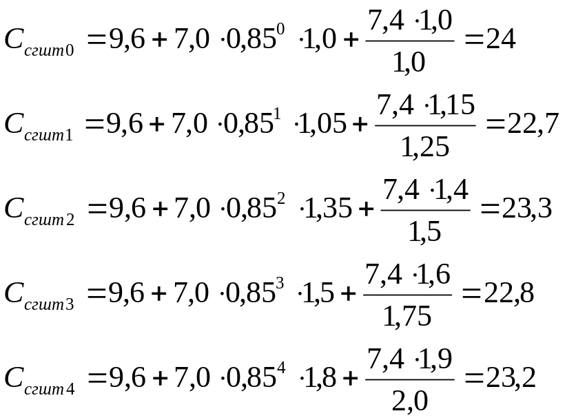 КNi – коэффициент роста объема производства при каждом шаге его увеличения по отношению к начальному (нулевому) шагу (1,0; 1,25; 1,5; 1,75; 2,0)