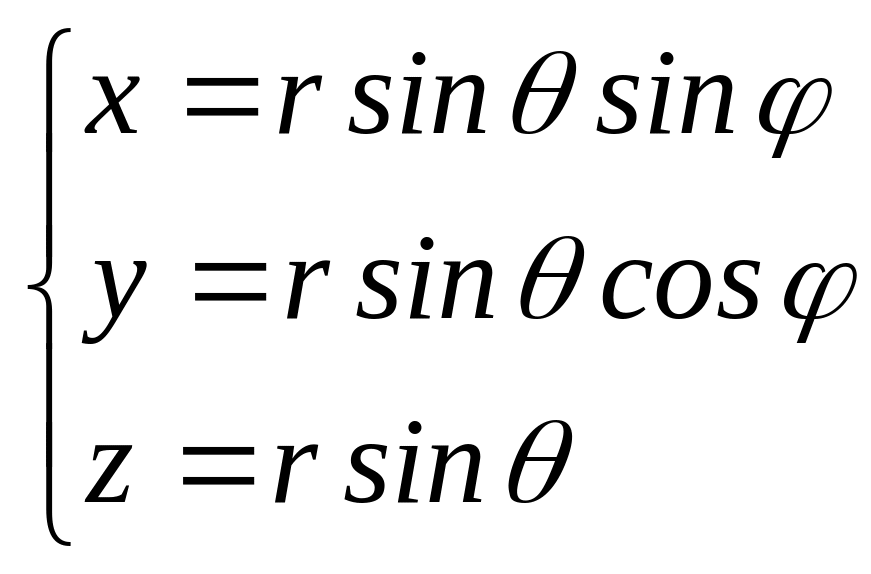 №171. Формулы связи между декартовыми координатами и сферическими имеют вид