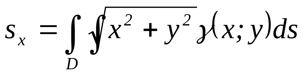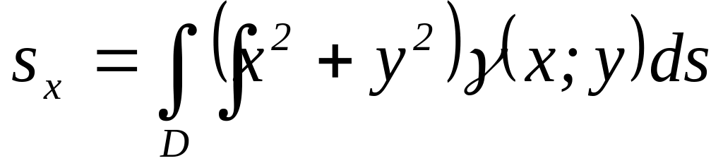 №162. Если поверхностная плотность пластины , то ее момент инерции относительно начала координат вычисляется по формуле: