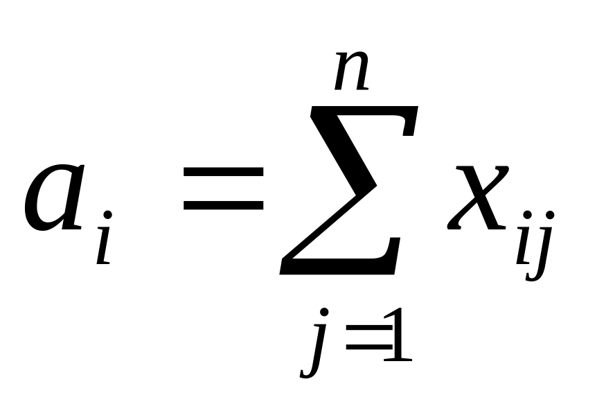ai – кількість рейсів, що потрібно зробити для вивезення вантажів від і-того постачальника;